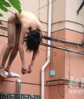 [图文]上海:男子赤身坠楼悬吊电线,各方紧急抢险( 2009年5月22日)