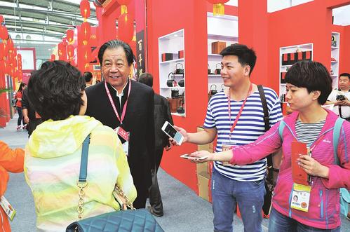 艾丰正在高兴地和记者谈他在“山西品牌中华行”的感受。记者 王晓华/摄