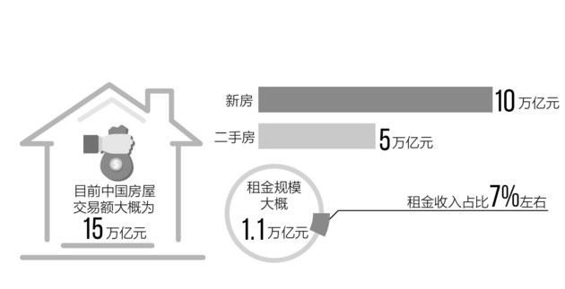【目前,中国房地产行业已经步入存量房时代。按照链家的数据,当前整个中国租房市场体量仍然很小,中国城市一年的租金在1万亿元左右,相比10万亿元的新房和6.5万亿元的二手房交易,只占到6%的比例。与国外相比,差距非常大,日本租金占整个房屋交易额比重在80%左右,美国是50%左右。