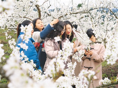 贵州太坪村:万亩李子花竞相绽放 优美景色吸引游客赏花