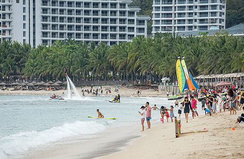 游客数量增加推动了酒店业发展,一座座豪华酒店沿着海岸线拔地而起。法国人埃里克在海南经营度假村。在旅游旺季,900个客房早早被预订一空。他说,度假村因出境旅游受限获益,“入住的国内游客数量增长了30%”。