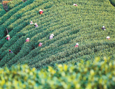 对于茶农来说,采摘头茬春茶,是春天的真正开始,也是春天最应景的一桩事。惊蛰过后,气温回升,茶蓬吐绿,遍山翠色,寂静的拔山茶园一下子热闹起来,到处是繁忙的采茶景象。