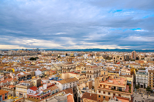 资料图:2020年1月30日,西班牙瓦伦西亚,从瓦伦西亚主教堂钟楼鸟瞰城市风光。(图片来源:视觉中国)