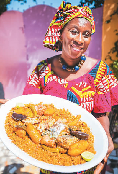 冈比亚妇女展示当地特色美食。图片来源:冈比亚旅游局官网