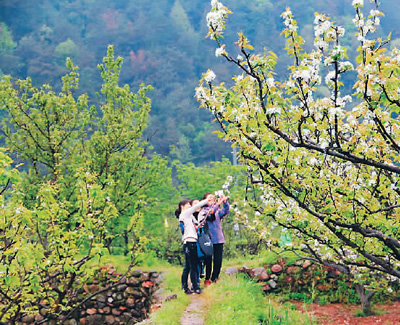 天台县滩岭村、石塘徐村、三村村、金山岭村从2013年开始,每年4月轮流举办梨花节,将丰富的梨花资源打造成惠农的“梨园经济”。
