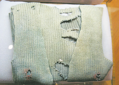 来到纪念馆一层,展柜里一件有破洞的毛背心引起了我们的注意。低头一看展签,原来是《为了忘却的记念》中写到的左联女作家冯铿的遗物。讲解员顾慧枫说,1950年,在龙华就义地大坑中发掘出18具完整骸骨和部分碎骨及遗物。遗物中有一件弹痕累累的羊毛背心,根据冯铿的爱人许峨等老同志指认,这件背心是冯铿生前喜欢穿的。至此,“龙华二十四烈士”的身份得以确认。