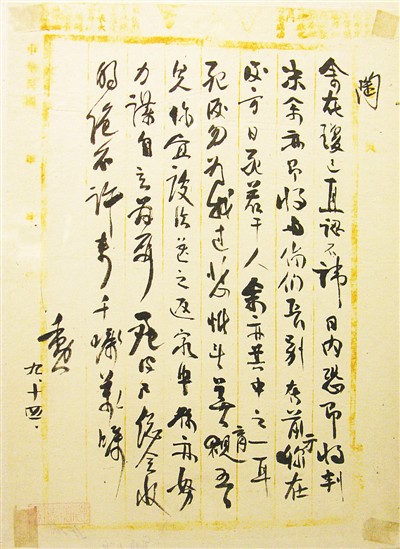 李硕勋烈士写给妻子的诀别信。图片由龙华烈士纪念馆提供