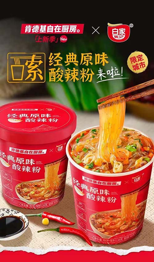 就像肯德基自在厨房和白家陈记的这次联名,不仅让肯德基自在厨房在餐饮新零售市场的口碑度暴涨,也让白家陈记的酸辣粉在年轻消费群体中打造了一波市场潮流,提升了品牌与消费者的沟通效率。
