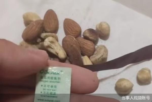 7月25日,福建一名网友发布视频爆料称三只松鼠每日坚果袋子里发现疑似脱氧剂撒漏的颗粒。该网友表示,自己是通过网购购买的三只松鼠每日坚果,怀孕的妻子已经打开食用了半包,发现袋子里有脱氧剂颗粒。脱氧剂封口处一边大一边小,没有完全密封,存在开口漏洞,拆开第二包也是一样的情况。