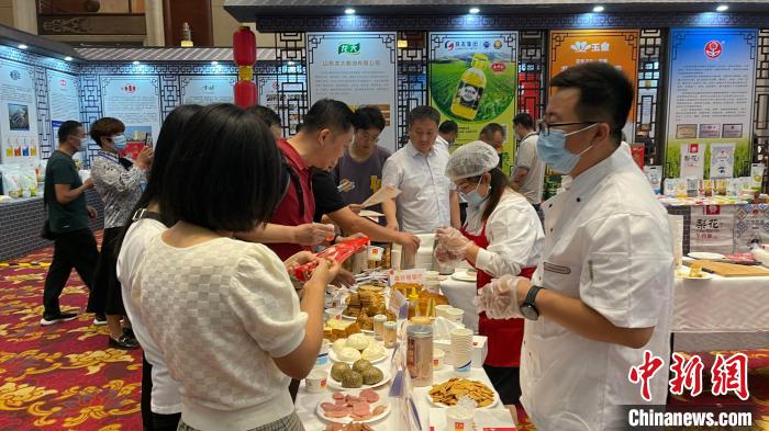 “齐鲁粮油”中国行太原推介会暨2022鲁晋粮食产销协作洽谈会27日在山西太原举办。 杨静 摄