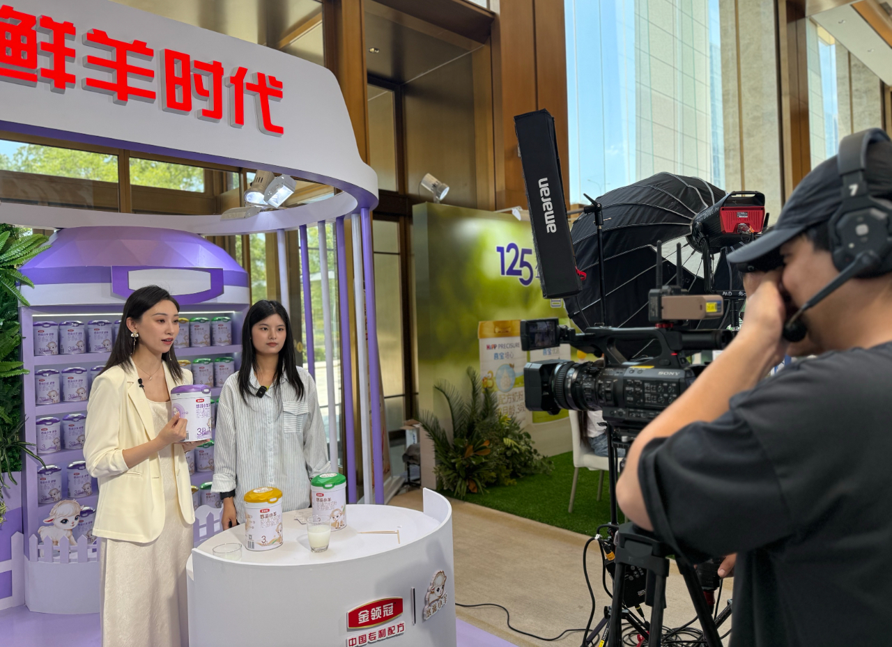 8月13日,在2025第八届中国羊奶大会现场,品牌在直播。