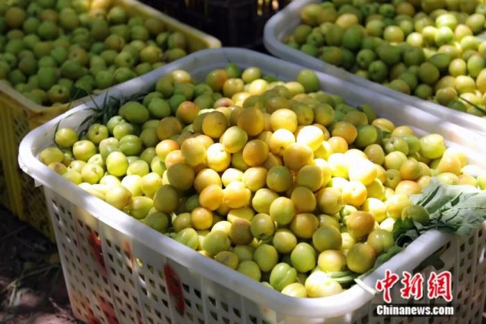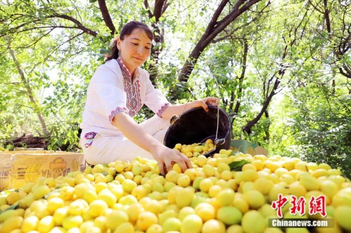库车市小白杏丰收,百姓采摘。库车市融媒体中心供图