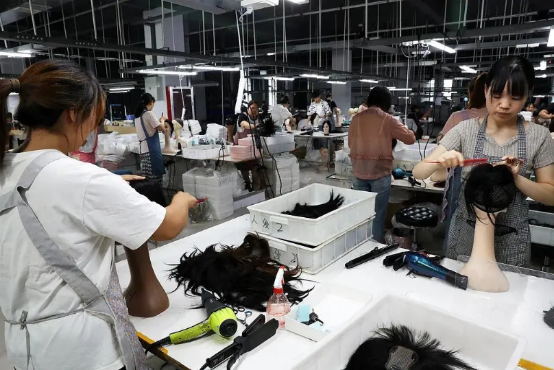 生产环节,假发生产中最精密的高针环节(高密度缝纫)目前已完全北移至朝鲜。