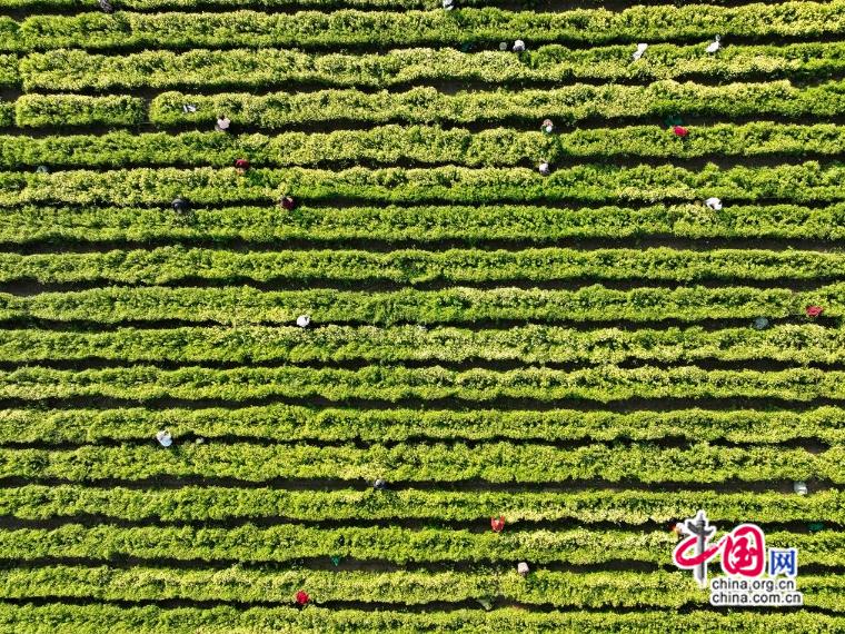 “今年花开得比去年旺,就是前段时间阴雨天多了点,好在这几天天气晴好,得抓紧抢收。”基地负责人徐远站在田埂上,一边向周围工人示范采收技巧,一边介绍,“这段时间是采收旺季,单这100亩地,每天就得雇200多个工人,才能跟上采收进度。”