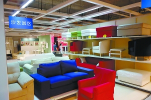 图为爱蜂巢家居体验馆沙发展区。记者 孙戉摄