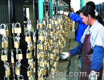 看似不起眼的小小五金锁具,其实蕴藏着巨大的金矿。目前中国五金锁具行业年销售额约为600亿元,产量超过20亿把,早已成为全球五金锁具产品最大生产国和消费国,并且形成了浙江、广东、山东三大生产基地。产品从挂锁为主,发展到拥有20大类100多个系列8000多个花色品种和规格;从传统的单舌门锁、双舌门锁发展到球形门锁、执手门锁、插芯门锁、电子锁、磁卡锁、IC卡锁、汽车锁、摩托车锁、指纹锁、数码锁等,并向机电一体化、智能化以及功能性与装饰性相结合的方向拓展,基本形成了高、中、低档配套的产品体系。