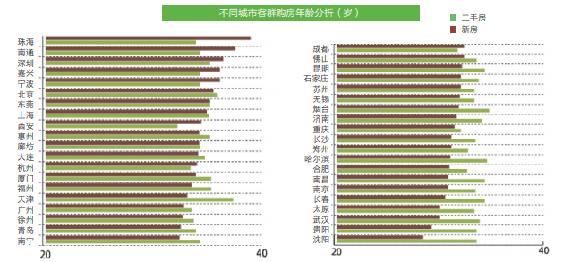 从购房时间角度,一线城市购买新房的平均年龄约为34.4岁,购买二手房的平均年龄约为35.1岁。分具体城市看,天津人二手房购买年龄最晚,为37.2岁;成都最早,为31.6岁。在大城市,受制于城市高房价及限购政策等影响,购房者首次置业难度相对较大,需要更长时间财富积累才能实现。
