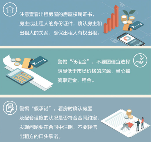 核查各方信息,看房把控细节,避免一次性支付高额租金,提高维权意识