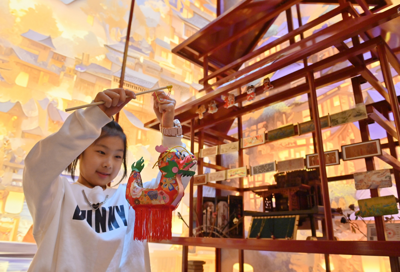 随着国潮文化的兴起,越来越多的商家将中国传统文化元素与现代设计理念相结合。图为在吉林省长春市一家商场内,小朋友在挑选“国风”灯笼。(图片由CNSPHOTO提供)