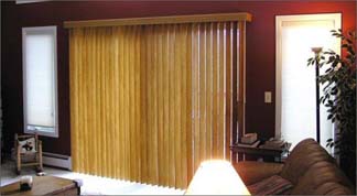 竹木垂直帘与竹木横百叶窗帘类似,采用椴木、楠竹、防水科技木等制成.