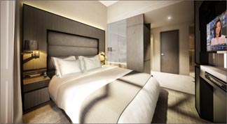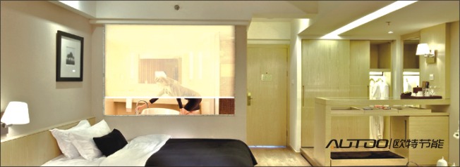在五星级酒店的客房中,采用这种电动卫浴卷帘与隔断玻璃相结合的方式越来越流行。因为对于酒店客房设计来说,最重要的是装饰及实用性的效果,如果使用其他产品作为阻挡作用,既会破坏整体的装饰效果,也会让住户产生不好的感觉。而“卫浴隔断卷帘”的诞生很好地解决了这一问题,让住户感觉到“浪漫”、“智能”、“高档”等元素.